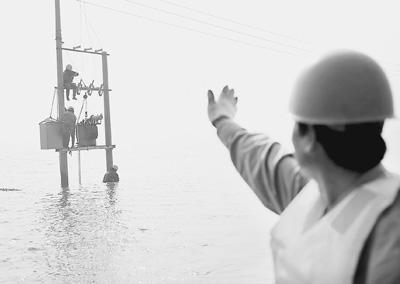 “必須趕在退潮前完成變壓器的安裝工作!”下午2時10分,22歲的浙江紹興電力局上虞市供電局線路二班的陶浙錦第三次扎進(jìn)混濁的海水,一支60多斤重的槽鋼被他從水下艱難背起。在桿上隊友的幫助下,槽鋼終于穩(wěn)穩(wěn)固定在水泥電桿上。