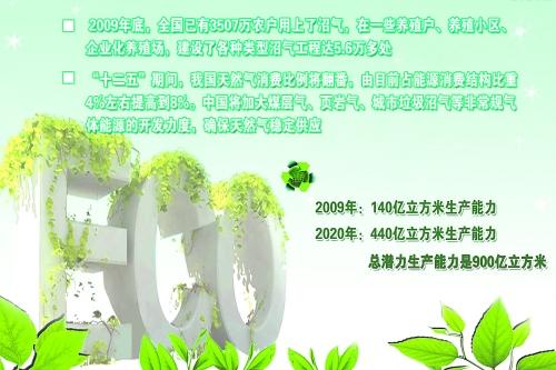 按照國家規劃,到2020年我國生物天然氣生產能力將達到440億立方米,總潛力生產能力是900億立方米。