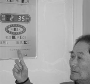 昨日下午,記者來到居民寧大爺家,南屋點著電暖器,溫度計上顯示的溫度只有零上14度,記者摸了一下暖氣,冰涼。