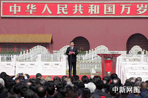 習近平說,今天,象征著光明、團結、和平、友誼的奧運圣火帶著希臘人民對中國人民的友好情誼,帶著世界人民對2008年北京奧運會的美好祝愿,帶著現代奧林匹克運動和平、友誼、進步的理想,從雅典的奧林匹克山來到了北京的天安門廣場。北京奧運會的火炬接力,將從這里出發,穿越廣闊的大地,跨過浩瀚的海洋,把五大洲人民的心連接在一起,共同奏響北京奧運會“同一個世界,同一個夢想”的嘹亮樂章。