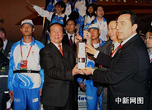 中新網(wǎng)4月3日電 當(dāng)?shù)貢r間4月3日凌晨0時(北京時間3日凌晨5時)許,載有北京奧運圣火的“奧運圣火”號專機(jī)抵達(dá)土耳其最大城市伊斯坦布爾的國際機(jī)場。飛機(jī)降落約10分鐘后,北京奧組委執(zhí)行副主席蔣效愚手持圣火燈走下舷梯,宣布北京奧運圣火正式進(jìn)入歐亞匯合點伊斯坦布爾。