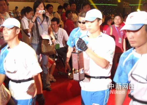 上午十一時(shí)四十二分,北京奧組委委員、教育部副部長陳小亞向杭州市贈(zèng)送火炬?zhèn)鬟f城市標(biāo)志。吳小璇代表杭州兩百零八名火炬手向?yàn)?zāi)區(qū)人民捐獻(xiàn)了五十萬三千四百十六元九角賑災(zāi)款。吳小璇告訴記者“所有的賑災(zāi)款項(xiàng)都是在家湊在一起自愿捐獻(xiàn)的,數(shù)字很真實(shí),你看,有個(gè)九毛的領(lǐng)頭出來。可能是哪個(gè)火炬手掏空了口袋里的錢了。”