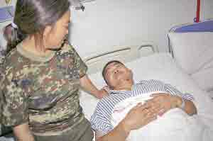 關(guān)注汶川大地震中救援工作的人們,不會忘記這樣一位硬漢。在地震襲來時,44歲的四川綿竹天池村村民劉崗均被滾落的巨石壓住了右腿,雖經(jīng)多放努力施救,但巨石紋絲不動,他隨時都有失去生命的危險。在被困兩天后的千鈞一發(fā)之際,為了讓自己獲救,這位硬漢要來了鋼釬、水果刀等工具,忍痛將自己的腿鋸斷后逃生。人們贊其可與三國時代“刮骨療毒”的一代名將關(guān)羽相媲美。