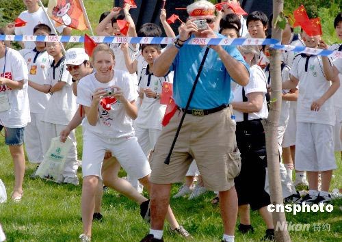 圖:外國友人熱情觀看奧運火炬傳遞