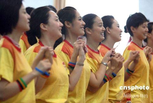 七月十八日,中國國際航空客艙服務部正式成北京奧運會、殘奧會文明觀眾拉拉隊。屆時這支由客艙服務員組成的拉拉隊必將成為一道靚麗的風景線。 中新社發 任海霞 攝