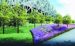 在天安門廣場西側,記者看到鐵藝的“彩虹橋”上有一個個小圓圈。據了解,在這一個個小圓圈上將擺上多種花草,組成“彩虹”。趙凱軍說,組字的用花非常講究,不僅要考慮配色,還要考慮花期和抗曬、抗雨性。花木公司研究所副所長陳菊是這方面的專家。據她介紹,七八月份的北京濕熱、干熱交替,他們在奧運期間擺的花都是適用性極好的品種,如非洲鳳仙、四季海棠、夏堇等。
