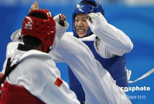 7月24日,中國跆拳道隊奧運模擬賽在北京懷柔進行。這次比賽完全模擬北京奧運會的實地場景,但并非對技戰術進行演練,而是強調各方面的細節讓運動員熟悉奧運會的比賽過程。走出傷病的陳中在此次模擬賽上展示了自己的絕佳狀態,陳中將參加女子67公斤以上級的比賽,準備沖擊第三枚奧運金牌。 中新社發 杜洋 攝
