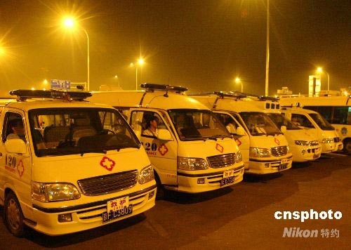 為防止意外發生,有大批的公安和醫護人員在現場隨時待命。 中新社發 富田 攝