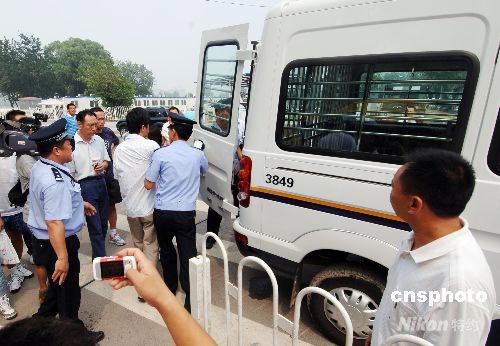 7月25日,北京奧運第4階段門票開售,由于前來購買的民眾眾多,警方出動警力維持現場秩序。中新社發 王東明 攝