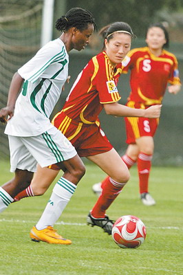 上半場(chǎng)結(jié)束前,尼日利亞隊(duì)通過(guò)反擊將比分扳平,下半場(chǎng)主教練商瑞華逐漸換上替補(bǔ)隊(duì)員,一直受腿傷困擾的馬曉旭也得到了半個(gè)小時(shí)的表演時(shí)間。全場(chǎng)結(jié)束前尼日利亞隊(duì)和中國(guó)隊(duì)相繼進(jìn)球,這也讓比賽在最后階段掀起高潮。