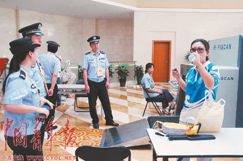 上海體育場內的奧林匹克賓館屬于封閉區域,進入賓館的工作人員、志愿者都需要經過嚴格的安檢,隨身攜帶的飲料必須試飲一口才允許帶入。