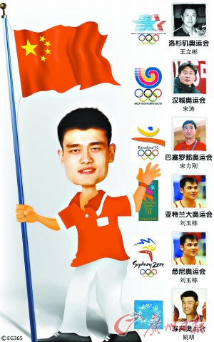 從中國代表團參加奧運會的歷史來看,旗手人選還是有一定的規(guī)律的。以夏季奧運會為例,在已經(jīng)參加的5屆奧運會上,中國代表團的旗手無一例外全部來自中國男籃,比如1984年洛杉磯奧運會的王立彬,1988年漢城奧運會的宋濤,1992年巴塞羅那奧運會的宋力剛,1996年亞特蘭大和2000年悉尼奧運會的劉玉棟以及2004年雅典奧運會的姚明。無一例外,旗手都是身高2米以上的“巨人”。