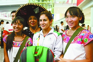 在北京首都機(jī)場接機(jī)大廳,戴著墨西哥傳統(tǒng)草帽頗顯怪異。昨日,3名墨西哥人就一直戴著能表明其身份的特殊帽子,等候本國運(yùn)動(dòng)員的到來。前來接機(jī)的攝影記者紛紛拿起相機(jī),對著他們猛拍。在這一小撮人群中,還有一對雙胞胎女孩,她們是中墨混血兒,不過不會(huì)一句漢語。妹妹拿著一面墨西哥國旗,她們的父親是中國人,他告訴記者,“這幾個(gè)人從墨西哥來北京看奧運(yùn),今天自發(fā)前來接機(jī)。”