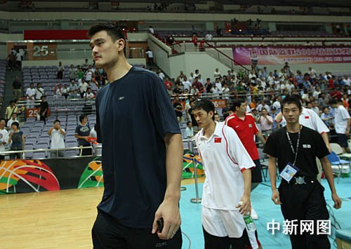 下午四時,中國男籃將士一行準時出現在看臺上,部分球員還不時打著哈欠。看來在前一天的比賽中以五十五比六十七輸給澳大利亞隊后,有些球員睡得并不好。那場比賽結束后,媒體把矛頭主要指向了得到零分的易建聯,以及內線和外線的配合上。