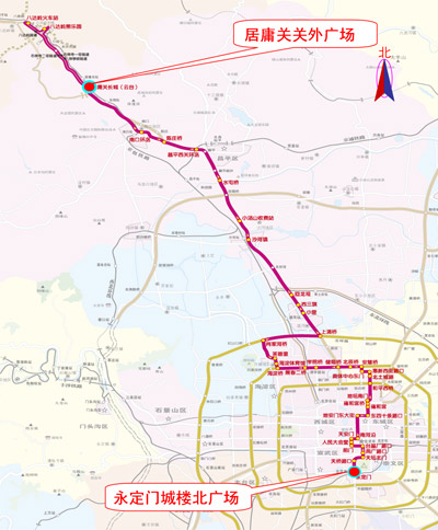 12時50分起,演練路線由永定門至八達嶺高速公路上清橋,按照演練行進方向將適時對兩條機動車道進行交通管理。