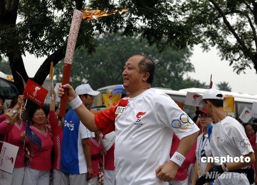 8月6日上午,奧運(yùn)火炬北京站傳遞從午門正式開始。圖為著名作家劉冠軍擔(dān)任第3棒火炬手。中新社發(fā) 王東明 攝