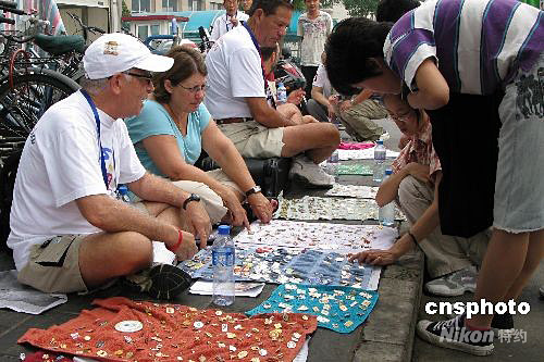 圖:外國游客北京擺"地攤兒"收集奧運徽章