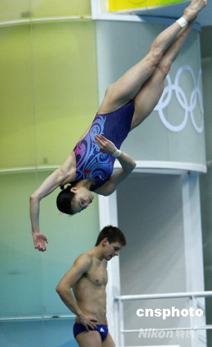 圖為吳敏霞在水立方適應場地。 中新社發(fā) 杜洋 攝