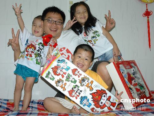 8月8日,越南胡志明市的華人在奧運開幕之際,身著印有北京奧運標(biāo)志和吉祥物福娃的服裝,祝福北京奧運。據(jù)悉,這些服裝和吉祥物是華人專門到中國廣西購買的。中新社發(fā) 楊巧笑 攝