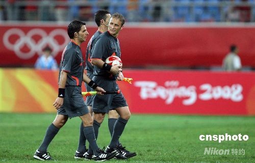 比賽結(jié)束后,裁判退場。中新社發(fā) 張宇 攝