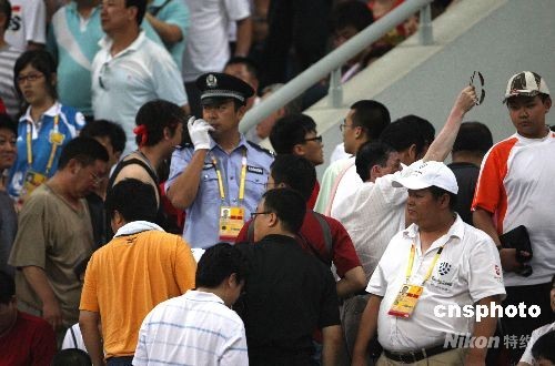 圖為中國隊(duì)失兩球,少兩名隊(duì)員的情況下,球迷提前退場。中新社發(fā) 張宇 攝