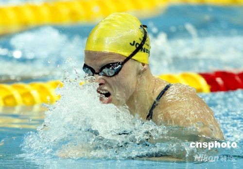 8月10日,澳大利亞著名選手瓊斯在女子100米蛙泳預(yù)賽中以1分05秒64的成績,打破了由羅雪娟創(chuàng)造的1分06秒64的奧運會紀(jì)錄。中新社發(fā) 杜洋 攝