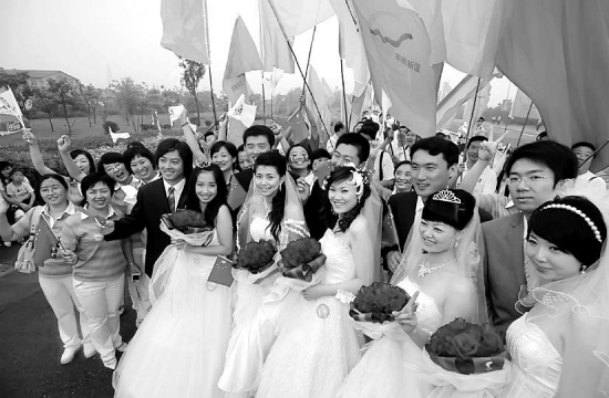 “真是沾了奧運(yùn)的光了,從8月8日到10日,每天五六對(duì)新人舉辦婚宴,工作人員都忙不過來了。由于場(chǎng)地限制,部分婚禮都安排在了晚上,平均每天晚上都有兩份婚禮!庇浾邌柤敖诨檠缜闆r時(shí),沈陽(yáng)最大的酒樓——天下春大酒店經(jīng)理李先生說。