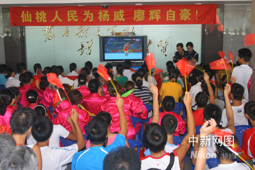 8月12日,楊威率領(lǐng)中國體操男隊(duì)奪得奧運(yùn)會團(tuán)體金牌。當(dāng)日中午時(shí)分,當(dāng)消息傳到楊威家鄉(xiāng)中國體操之鄉(xiāng)湖北仙桃市,早早守侯在電視機(jī)前的當(dāng)?shù)毓賳T、民眾一片沸騰,人們敲鑼打鼓、齊鳴鞭炮,熱烈慶賀仙桃籍運(yùn)動員楊威再次獲得奧運(yùn)會體操男團(tuán)冠軍。