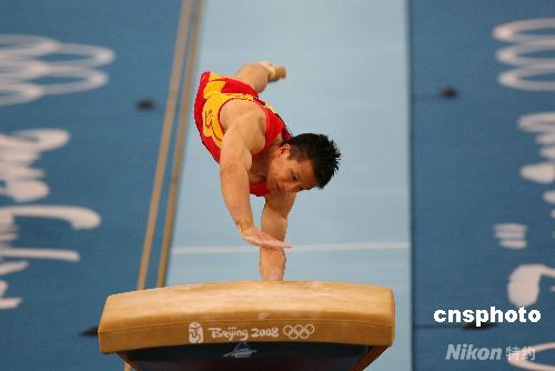 8月12日,中國隊在北京奧運會體操男子團體比賽中以286.125分勇奪金牌。中新社發 武仲林 攝