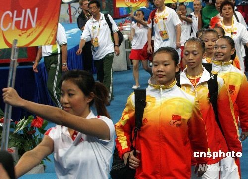 圖:中國(guó)隊(duì)向女子體操團(tuán)體決賽金牌沖擊