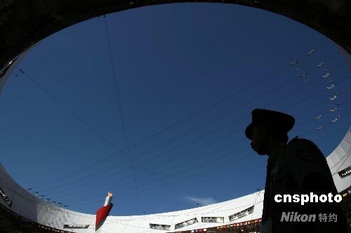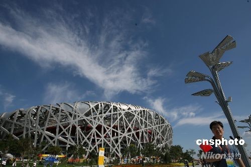 8月15日,北京一掃連日陰霾,展現藍天白云天氣。當日,北京奧運會田徑比賽拉開帷幕。中新社發 武仲林 攝