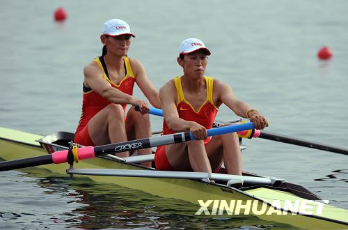 8月16日,中國選手吳優/高玉蘭在順義奧林匹克水上公園進行的北京奧運會賽艇女子雙人單槳A組決賽中奪得亞軍。新華社記者王雷攝