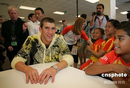 圖:菲爾普斯對話“奧運助威小冠軍”