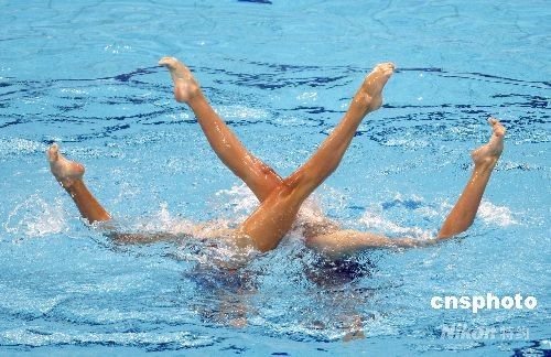 8月20日,北京奧運(yùn)會花樣游泳雙人項(xiàng)目比賽全部結(jié)束,俄羅斯組合阿納斯塔西婭·達(dá)維多娃/阿納斯塔西婭·葉爾馬科娃以總分99.251分奪金。中新社發(fā) 杜洋 攝