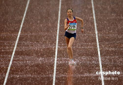 北京奧運會女子20公里競走8月21日上午在大雨中舉行,俄羅斯選手奧莉加·卡尼斯金娜以1小時26分31秒的成績獲得金牌;挪威選手謝斯蒂·蒂瑟·普拉策以1小時27分07秒的成績奪得銀牌;意大利選手埃莉薩·里高多以1小時27分12秒的成績獲得銅牌。中國選手劉虹成績為1小時27分17秒,名列第四,無緣獎牌。 中新社發 任晨鳴 攝
