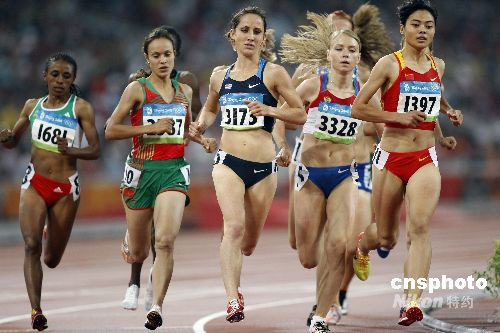 8月21日,北京奧運會田徑比賽女子1500米預賽在國家體育場進行,中國選手劉青(右一)位列小組第9名,無緣決賽。中新社發 盛佳鵬 攝