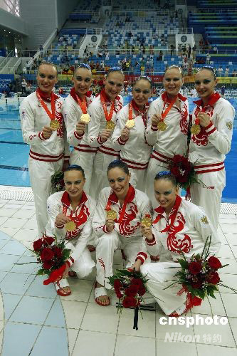 8月23日,俄羅斯花樣游泳隊在北京奧運會集體項目決賽中獲得金牌。中新社發 杜洋 攝