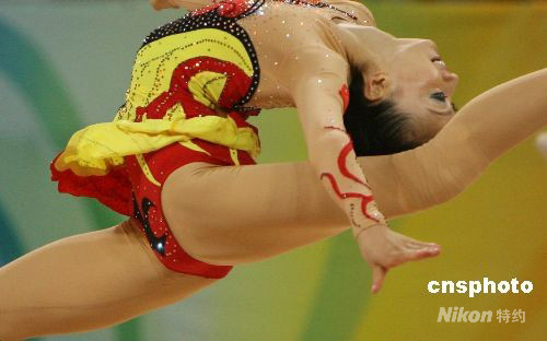 8月24日,中國藝術體操隊在北京奧運會藝術體操集體全能決賽中奪得銀牌,取得歷史性突破。 中新社發(fā) 武仲林 攝