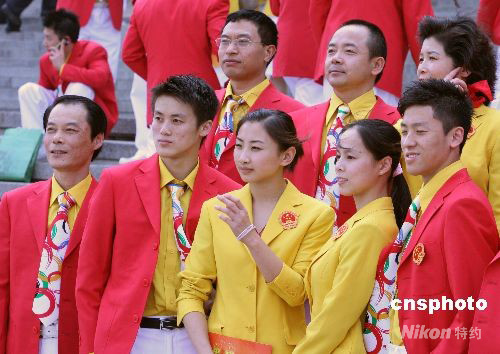 8月26日,2008年北京奧運會中國體育代表團總結大會在北京人民大會堂金色大廳舉行。中國蹦床運動員參加北京奧運會中國體育代表團總結大會。 中新社發 廖文靜 攝