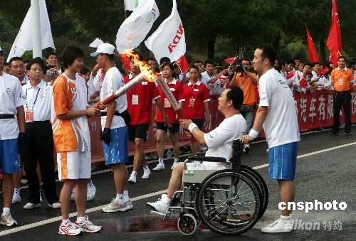 2008年8月31日上午,北京殘奧會圣火在武漢傳遞。中新社發 攝記 攝