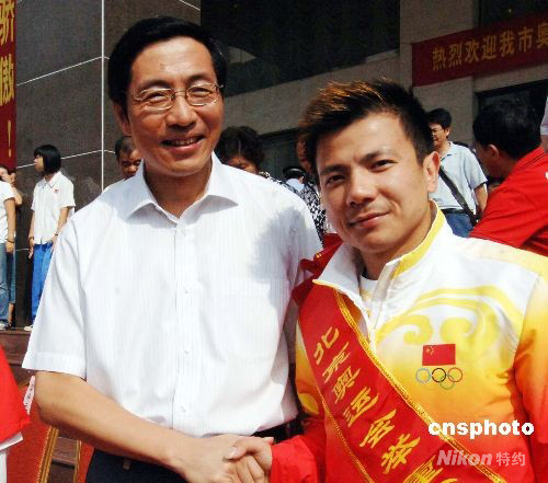 圖:福建龍巖市委書記歡迎奧運金牌運動員返鄉(xiāng)