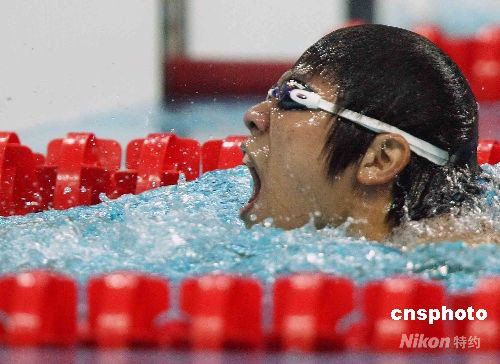 9月7日,在北京殘奧會男子100米自由泳-S3級別決賽中,中國選手杜劍平以1分35秒21的成績摘得金牌并打破世界紀錄,這是中國軍團在本屆殘奧會上的首枚金牌。中新社發 任晨鳴 攝