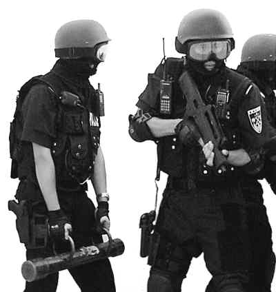 在硬件裝備上,“藍(lán)劍突擊隊(duì)”也達(dá)到了國(guó)際標(biāo)準(zhǔn)。如將原有的八一式自動(dòng)步槍更換成野戰(zhàn)部隊(duì)裝備的九五突擊步槍,將九七式微沖更換為目前國(guó)內(nèi)最先進(jìn)的零六式微型沖鋒槍。特警們頭戴的凱夫拉鋼盔也是北京市公安局首次裝備的防彈型鋼盔。
