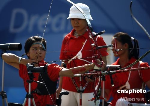 9月15日,北京殘奧會射箭女子團體反曲弓決賽中,中國隊以205比177的比分獲得金牌。中新社發 杜洋 攝