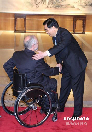 胡錦濤歡迎殘奧委會主席克雷文夫婦出席殘奧會閉幕式