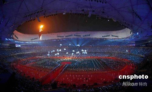 9月17日晚,北京2008年殘奧會閉幕式在國家體育場“鳥巢”舉行,國際殘奧委會主席克雷文稱贊這是有史以來最偉大的殘奧會。圖為閉幕式上精彩紛呈的表演。中新社發 盛佳鵬 攝