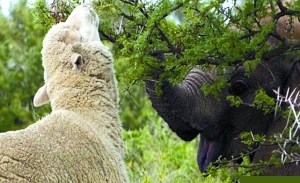 ·圖:喪母小象與綿羊哥哥相依為命