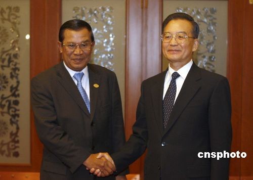 ·圖:溫家寶會見柬埔寨首相洪森