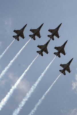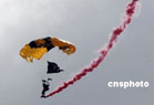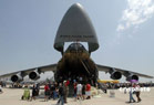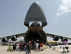 當地時間5月4日,位于美國南加州河濱縣的一個美國空軍預備基地舉行規模盛大的航空展和飛行表演。C-17A全球霸王運輸機、C-5銀河運輸機等空中巨無霸和F-22猛禽戰機等美軍先進軍用飛機亮相展覽,F-22戰機飛行表演、美國空軍“雷鳥”飛行隊的特技表演等令近十萬民眾大飽眼福。