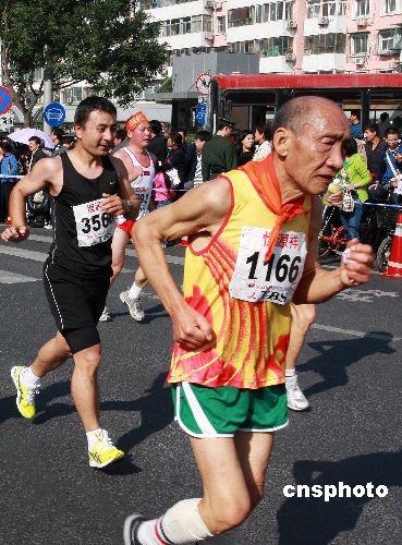 ·圖:北京國際馬拉松賽場上不服老的爺爺
